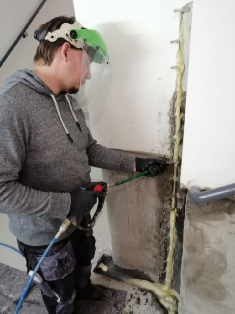 - Bei starkem Wasserandrang benutzt man zusätzlich Polyurethanschaum.